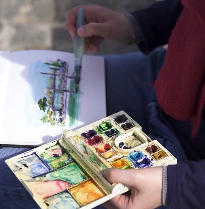 Realização de uma oficina de desenho urban sketching no centro histórico de Arruda dos Vinhos, num percurso entre a Igreja Matriz e o Chafariz.