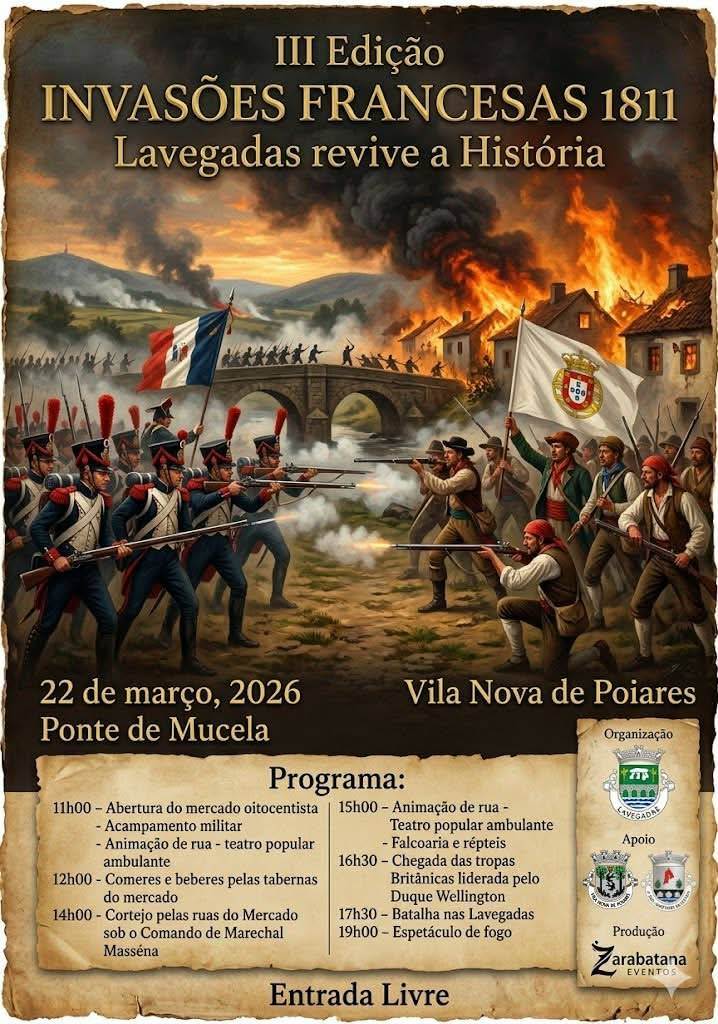A Ponte de Mucela, em Vila Nova de Poiares, volta a recuar no tempo para recriar um dos episódios marcantes da história das Invasões Francesas. Uma jornada cheia de animação, recriações históricas, mercado oitocentista, teatro, falcoaria e a grande batalha nas Lavegadas.