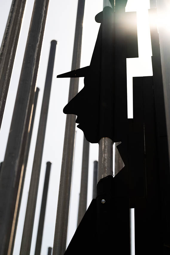 The challenge was made to the sculptor Rogério Timóteo, who created a sculptural set composed of 152 pillars, representing the total of forts and strongholds that make up the defensive system built north of Lisbon to protect the capital from the attack of Napoleonic troops, in 1810. According to the author of the piece, "suspended on some pillars are fragments of a different metal décor that, when viewed from certain angles, allow us to visualize the silhouette of an infantry soldier and a cannon". The sculptor also explains that, being deployed in the centre of a roundabout, the sculptural set has the necessary characteristics not to impair the vision of motorists, since the configuration of the piece allows any location on the road to be seen from the other side. "It is in this duality of observation by motorists that the dynamic of the piece, with its absence-presence, is developed, creating an apparent movement capable of constantly renewing the observer's gaze".
